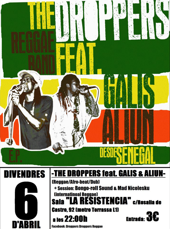 Concierto a cargo de la banda The Droppers junto a Galis (Seydou Ndaye) y Aliun (Alioune Diop) de Senegal este viernes 6 de Abril.