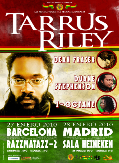 Acompañando a Tarrus Riley tendremos al saxofonista y a los cantantes Duane Stephenson y I Octane.