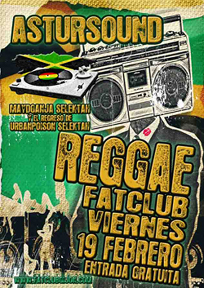 Viernes 19 feb. 00:00 h. Fat Club (c/ Jacobo Olañeta, Gijón) con  Maydganja & Urban Poison Selektah (Astur Sound), recorerran los sonidos rub a dub, nu roots, dancehall y jungle.