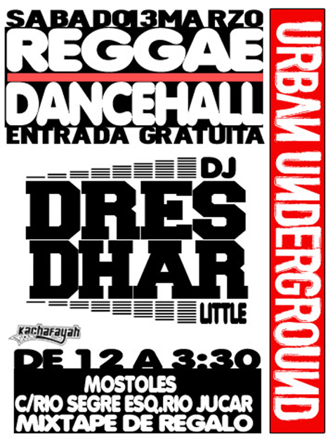 Este Sábado 13 de Marzo Dj Dres & nos ofrecerán una sesion exclusiva con el mejor dancehall en el Urban Underground club (Móstoles).