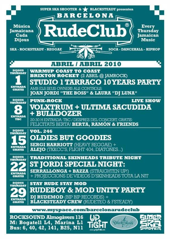 Rude ClubProgramación para este mes de Abril para el , c/ Almogavers 116, Barcelona.