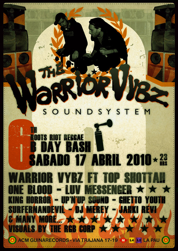 Sábado 17 de Abril con: Warrior Vybz feat. Top Shottah, One Blood, King Horror, Luv Messenger, Up & Up Sound, Ghetto Youth, Dj Merey, Surfernandevil, Jahky Revi y más.