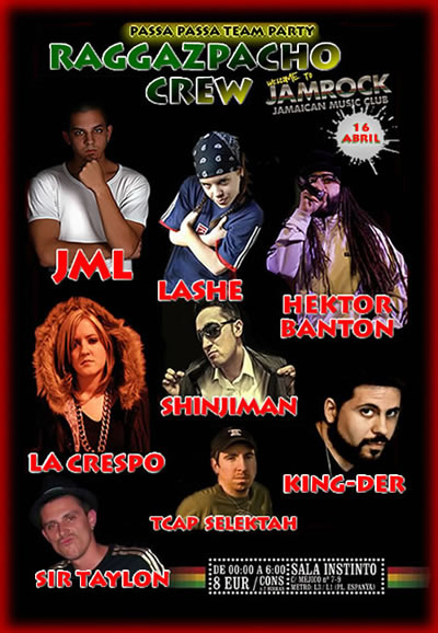 JamrockEste próximo viernes 16 de Abril tendrá lugar en el Jamrock una gran fiesta cargada de  y Dancehall tanto a los platos como al micro. El colectivo Raggazpacho Crew nos presenta su «Passa Passa Team Party» con la presencia de: