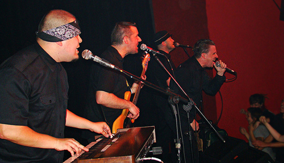El KGB un club con más columnas que la sala hipóstila del templo egipcio de Karnak y de acústica matadora, acogió el concierto barcelonés de presentación de “IV”, el último trabajo de la banda californiana The Aggrolites.