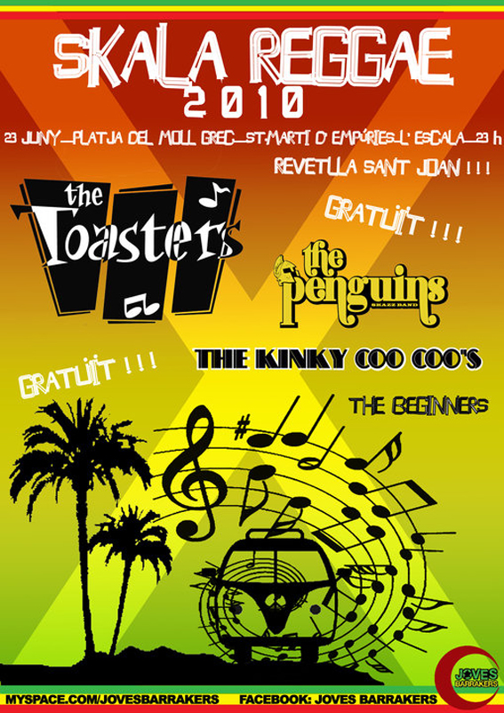 The Toasters, The Beginners, The Kinky Coo Coo´s y The Penguins actuarán este Miércoles 23 de Junio en en la playa del Moll Grec de Sant Martí d´Empuries.