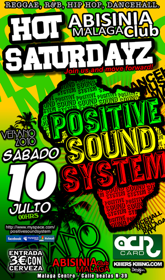«Este sábado 10 de Julio vuelven los Hot Saturdayz de Positive Sound en Abisinia CLub, en Málaga.»