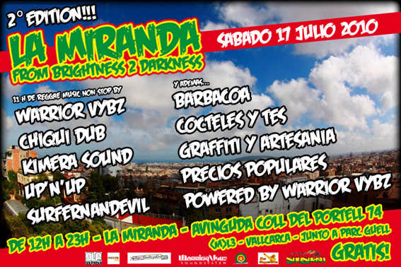 Segunda edición para este verano del 2010 de la fiesta gratuita que se realiza en la entrada del Parque Güell y en ella se disfruta de unas vistas panorámicas de Barcelona y de un festival lleno de música y ambiente Reggae, con su barbacoa, puestos de artesania, graffiti, cockteles veraniegos y tes.