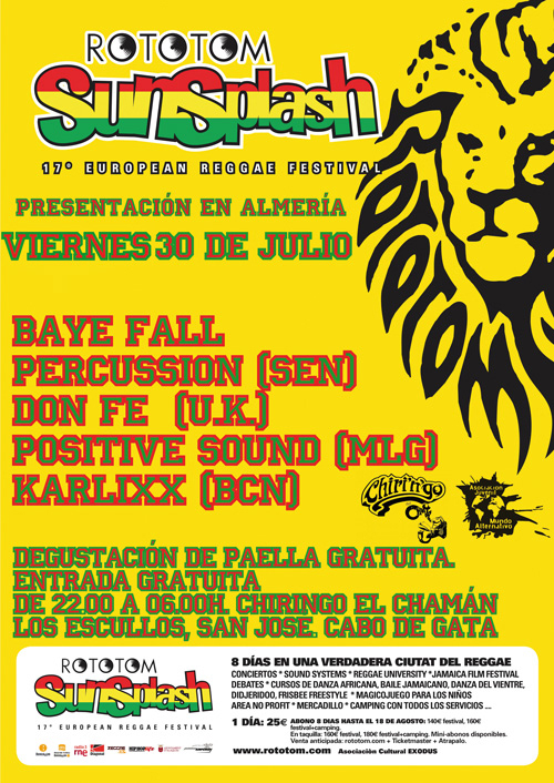 «El viernes 30 de Julio, el Rototom se presenta en Almería, en una parada más en su trayecto para darse a conocer en la Península.»