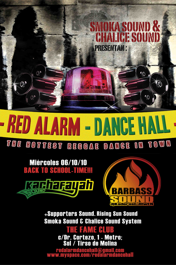 Smoka Sound y Chalice Sound presentan Red Alarm. Fiesta Reggae/Dancehall el próximo Miércoles 6 de Octubre con Barbass Sound, Kachafaya, Rising Sun, Supporters Sound, Chalice Sound y Smoka Sound.