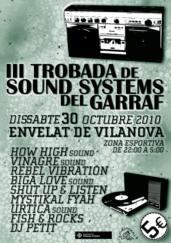 «El próximo 30 de Octubre se celebra la tercera “Trobada de Sound Systems del Garraf” en el envelat de Vilanova i la Geltrú (al lado del polideportivo).»