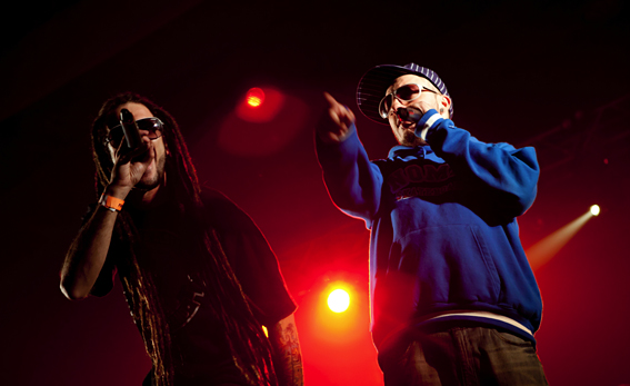 Turno ya para Swan Fyahbwoy y su compi maño Karty er Nene acompañados en los platos por Hossan de Kaloncha Sound tirando esas bases de rap y dancehall pesadas que forman parte del repertorio de Swan y Karty. Con su estilo chulesco, y peleando codo a codo, una vez más defendieron bien un directo que al numeroso público gustó y enganchó. Teniendo en cuenta que el sonido fue casi horrible (Ras Sánchez, dejó el listón demasiado alto para los técnicos) hicieron gala de un muy buen saber hacer. Creo también que la hora de actuación fue a su favor.