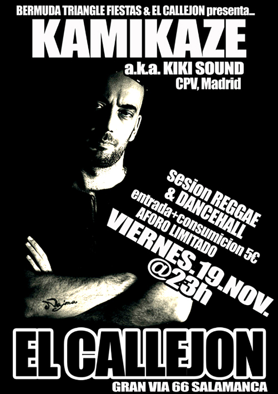 «Sesion de Reggae & Dancehall con aka Kiki Kound (CPV, Madrid) este viernes 19 de Noviembre en el Callejón, Gran Vía 66, Salamanca.»