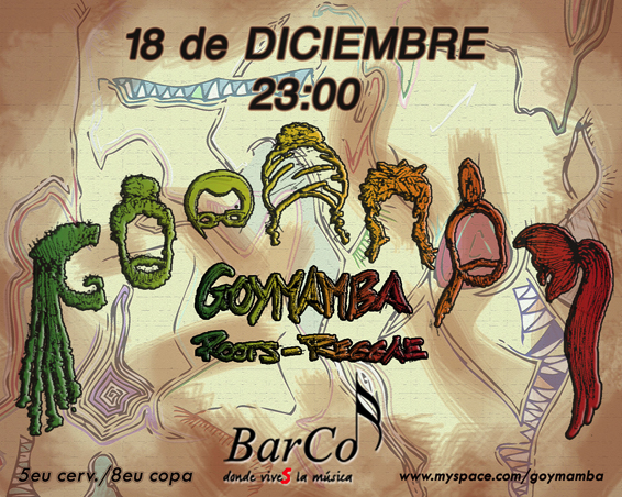La banda madrileña Goymamba actuará el próximo Sábado 18 de Diciembre en la sala El Barco.
