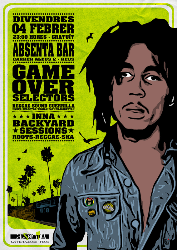 «Desde Game Over Selectors Reggae Sound Guerrilla, el Carmen D.C. (Reus), tenemos el placer de informaros que éste próximo Viernes 4 de Febrero estaremos pinchando en el Absenta Bar (C/ Aleus, 2 de Reus) en conmemoración del nacimiento de Bob Marley.»