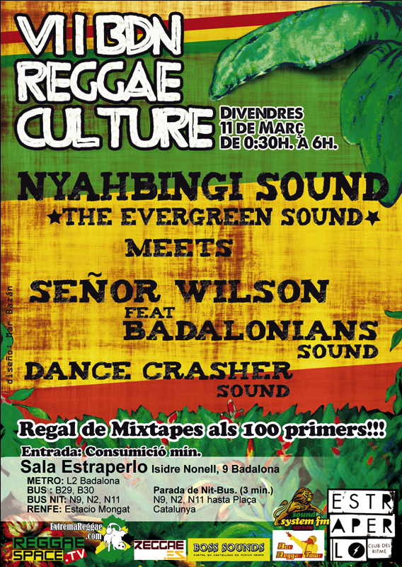 El próximo Viernes 11 de Marzo a partir de las 00:30 hasta la 6:00, 7º edición del Bdn Reggae Culture en la sala de Badalona.