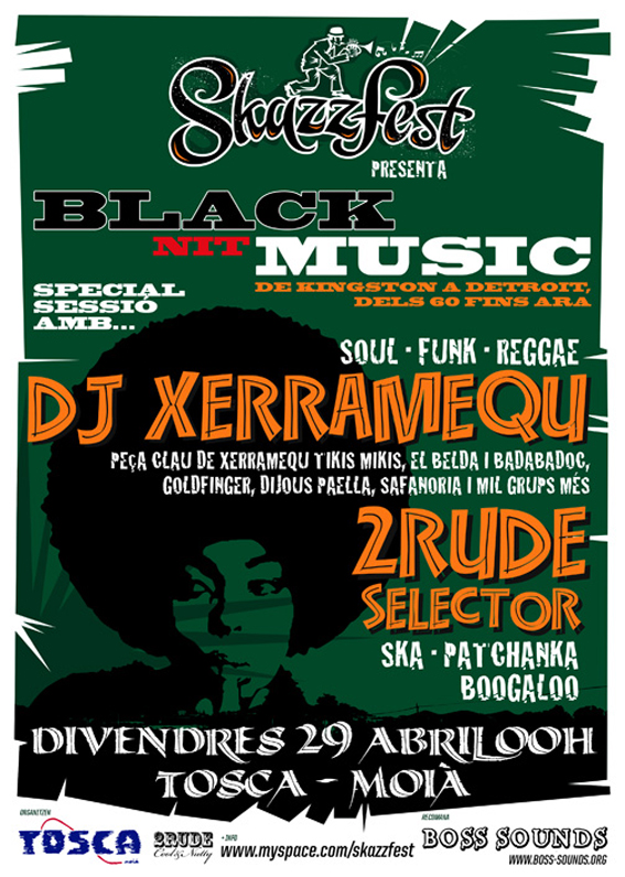 Sesión de música negra a cargo de Dj Xerramequ y 2Rude Selector el próximo 29 de Abril en la sala Tosca, c/ de la Tosca, Moià.