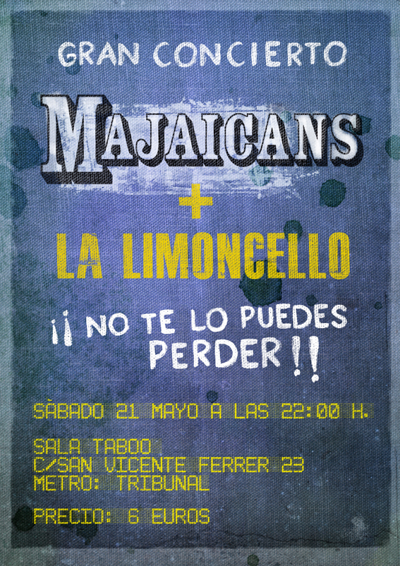 Hoy, sábado, 21 de Mayo, Majaicans actuarán acompañados por La Limoncello en la sala Taboo de Madrid.