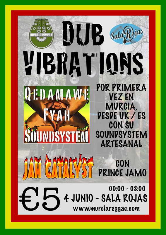 «Por primera vez en Murcia, a manos de Qedamawe Fyah llega un 100% artesanal. Construido con el único propósito de poner reggae… y como suena el reggae atreves de un sound System no se puede comparar con ninguna otra forma de escucharlo. El uno esta hecho para el otro, así que no pierdas esta oportunidad de gozar de esta primicia dentro de la región!»