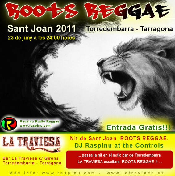 Fiesta de San Juan con sesión de Roots, noche de reggae a cargo de Raspinu en el Bar La Traviesa de Torredembarra (Tarragona).