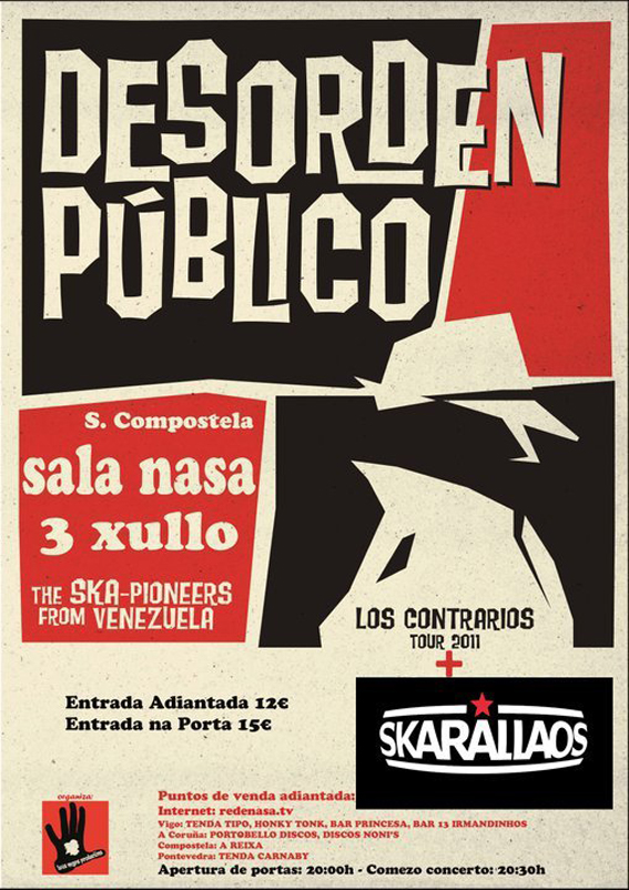 «Una vez más, y esta será la quinta producción de este año, Luva Negra Producións, después de los conciertos de Roy Ellis Aka Mr. Symarip, Rubén López & The Diatones, Wisecräcker y Dave Barker, traerá a la tierras gallegas Desorden Público de Venezuela, una banda que lleva 25 años dando guerra por todo el mundo.»