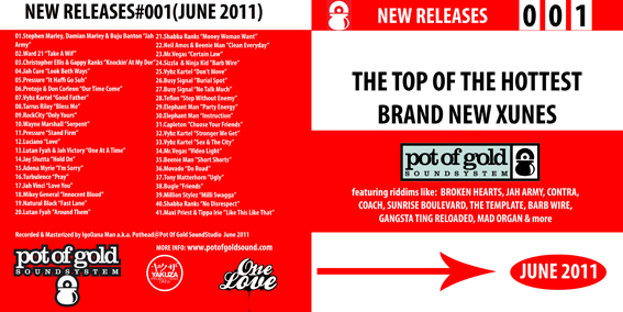 «Me complace presentaros la nueva serie de de Pot Of Gold Sound, New Releases será una serie de mensual en las que seleccionaré lo mejor de los temas que se editado en ese mes. Lo mejor de las novedades (Y con un guiño en el diseño a los one riddims de Greensleeves).»