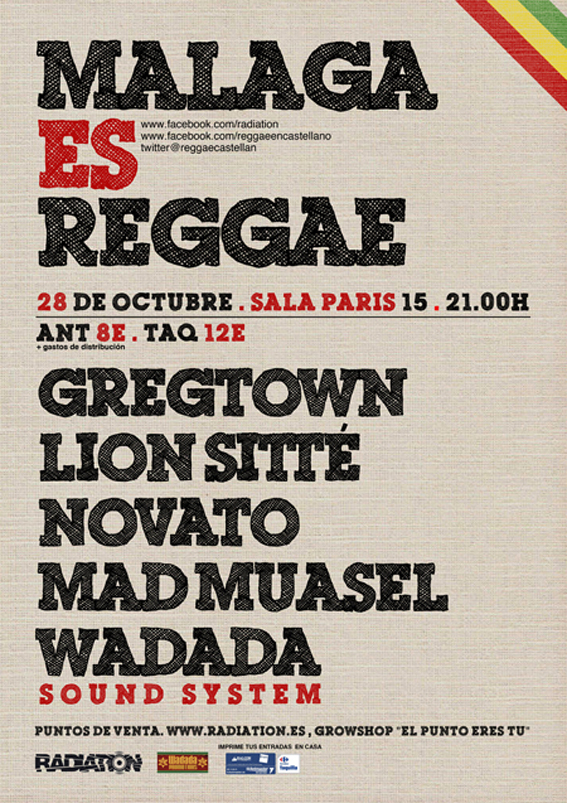 «Nace un nuevo Festival de Reggae en la zona sur de España, Málaga ES Reggae. Se celebrará en la Sala París 15 de Málaga el próximo 28 de Octubre a partir de las 21.00h.»