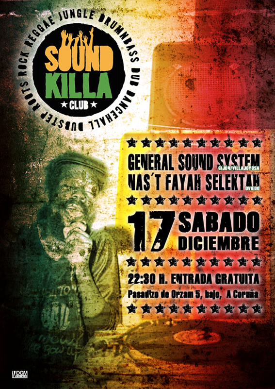 «General Sound System y Nas´t Fayah Selekta tienen el placer de informar de su visita a Galicia el próximo Sabado 17 Diciembre. Actuarán en el Soundkilla Club (Pasadizo de Orzam, A Coruña), en esta fiesta se recoreran los sonidos ska, rocksteady, roots reggae, Uk dub, digital, nu roots, dancehall y jungle.»