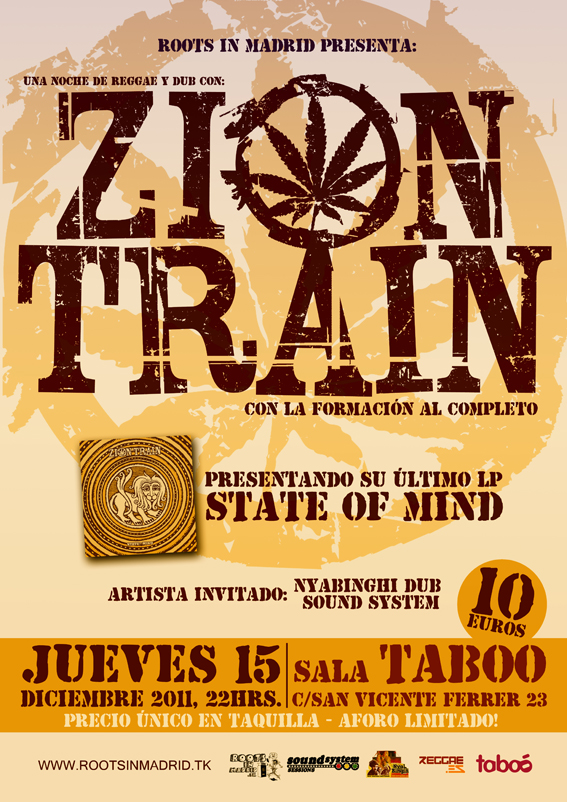 Organiza: Roots In Madrid Colabora: Nyabinghi Dub Sound System, Asociación Cultural Reggae y Taboo.