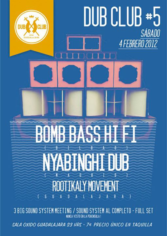 Nueva edición del Dub Club en la sala Óxido de Guadalajara. En esta ocasión el cartel lo forman Bomb Bass Hi Fi, Nyabinghi Dub y Rootikaly Movement.