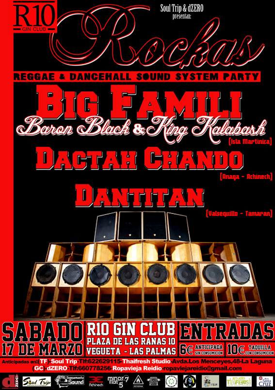 «Rockas-Reggae & Dancehall Sound System Party tendrá lugar el próximo 17 de Marzo en el R10 Gin Club de Las Palmas de Gran Canaria.»