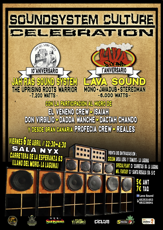 «Con motivo del 10º aniversario de Jah Ras y el 1er aniversario de Lava Sound, se darán cita un gran número de cantantes representantes de la escena del Archipiélago como El Veneno Crew, Isaiah, Dadda Wanche, Don Virgilio, Dactah Chando, Reales o Profecía Crew, que actuarán por primera vez en Tenerife.»
