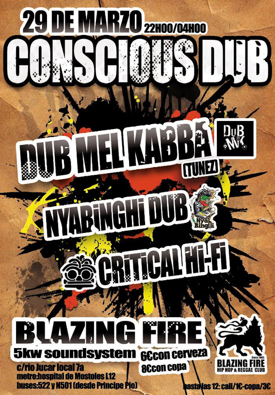 Sesión a cargo de Dub Mel Kabba, Dub y Critical Hi Fi este jueves 29 de Marzo en la sala Blazing Fire.