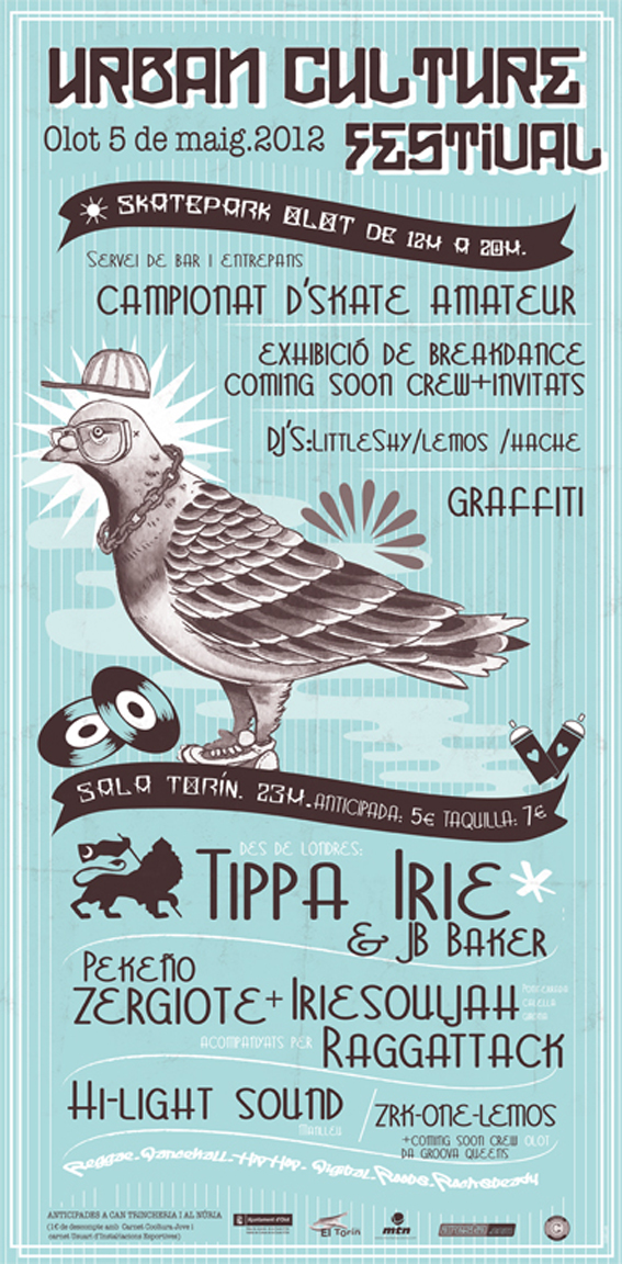 «De 12:00 del mediodía a 20:00 en el Skatepark de Olot, campeonato amater de skate, exhibiciones de graffiti, break dance, hip hop, dancehall, Dj, servicio de bar…»