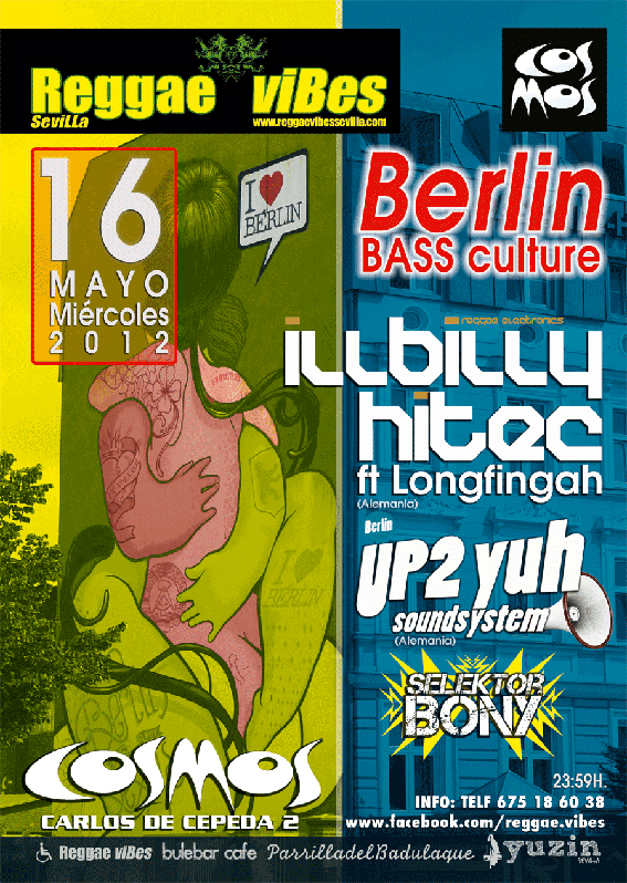 «Los sonidos de Berlin llegan a Sevilla bajo los controles de quienes se caracterizan por su fusión del dubstep, jungle, breakbeat y electro provocando ondas sonoras de reggae electrónico. En esta ocasión los acompaña Longfingah Mc. Para completar la noche estará Up2Yuh sound system, Selecta Fob & Sixty Baath, dueto berlinés de reconocido nombre en la escena alemana y Selektor Bony, residente de Reggae Vibes.»
