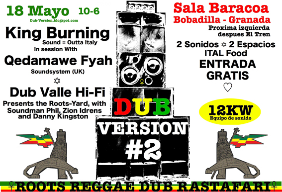 «Este viernes 18 de Mayo se celebra la segunda edición de la fiesta Heavyweight Granadina Dub Version. En esta ocasión contaremos con la novedad de la , un espacio en la terraza de la sala donde habra ital food y montado por Hi-Fi con la presencia también de Zion I-drens y Danny desde Italia.»