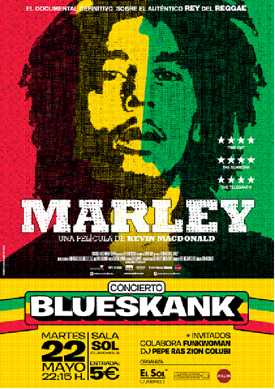«La Sala El Sol es el lugar escogido para este evento en el que cine y música se darán la mano. El mítico escenario madrileño acogerá el concierto de la banda Blueskank, es eslabón perdido de la música negra. Este sexteto de roots reggae llega a Madrid después de haber girado por ciudades como Londres, y Sevilla.»