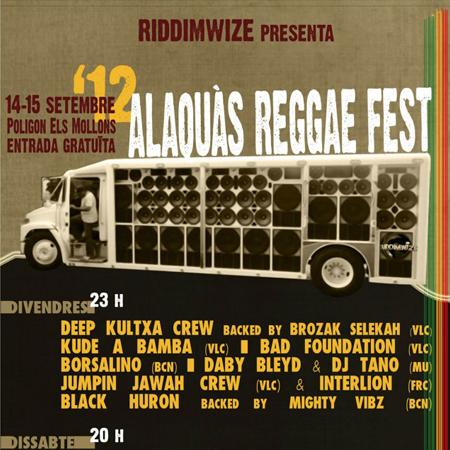 Viernes 14 de septiembre a partir de las 23:00 con Deep Kultxa Crew backed by Brozak Selektah (Vlc), Black Huron backed by Mighty Vybz (Bcn), Borsalino Sound (Bcn), Daby Bleyd & Dj Tano (Mu), Bad Foundation, Kude A Bamba (Vlc), Jumpin’ Jawah Crew & Interlion (Vlc)