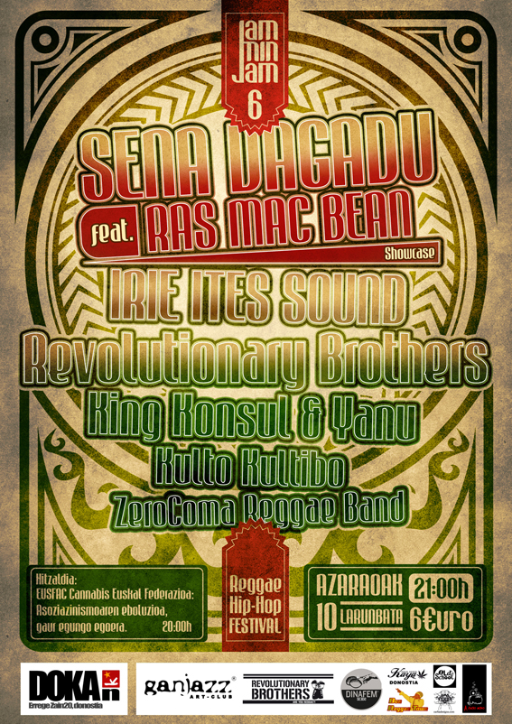 «El festival cumple 6 años, festival que entorno al reggae y hip-hop se ha convertido en una referencia en Donostia y Gipuzkoa. Estos años han actuado artistas de prestigio en la escena internacional, y esta edición para celebrar el 6º aniversario tendremos a la africana en la Sala Doka de Donostia (Calle Escolta Real 20, barrio de El Antiguo).»
