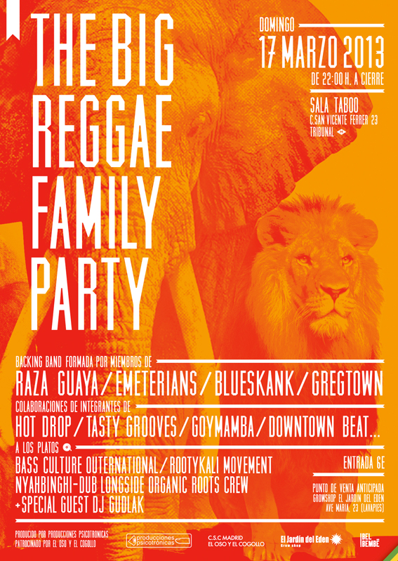 Producciones Psicotrónicas presenta «The big reggae family party» en Madrid el 17 de Marzo
