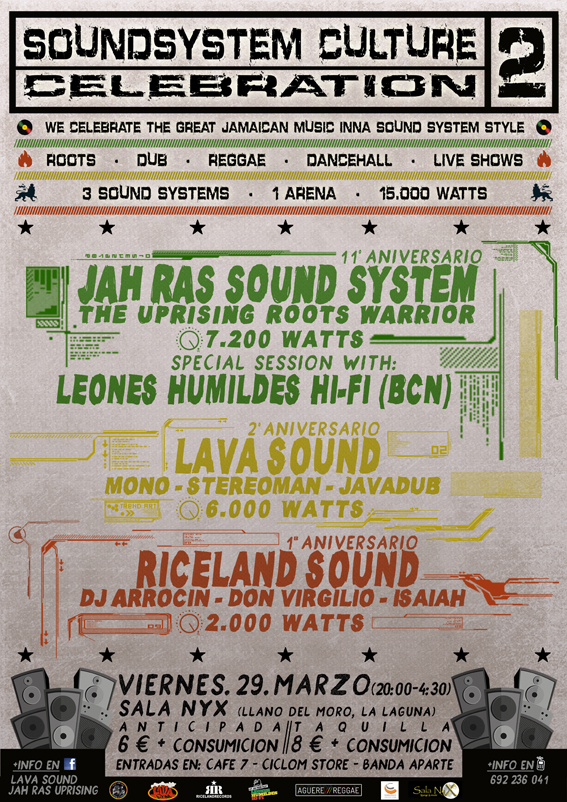 Para celebrarlo, organizan en la noche del Viernes Santo (29 de marzo) el encuentro SOUND SYSTEM CULTURE CELEBRATION 2, que, al igual que el año pasado, se llevará a cabo en la Sala Nyx de Llano del Moro en La Laguna (Tenerife).