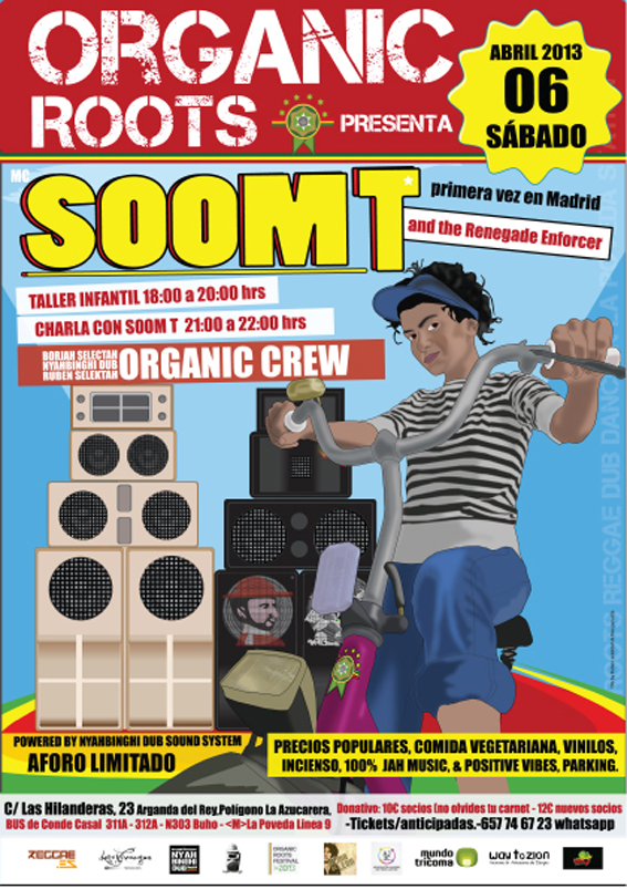 Soom T se presenta por primera vez en tierras madrileñas, el día 6 de abril, en la Asociación Organic Roots y junto a ella tenemos calentando la pista a la Organic Crew formada por Borjah Selectah, Nyahbinghi Dub y Ruben Selektah.