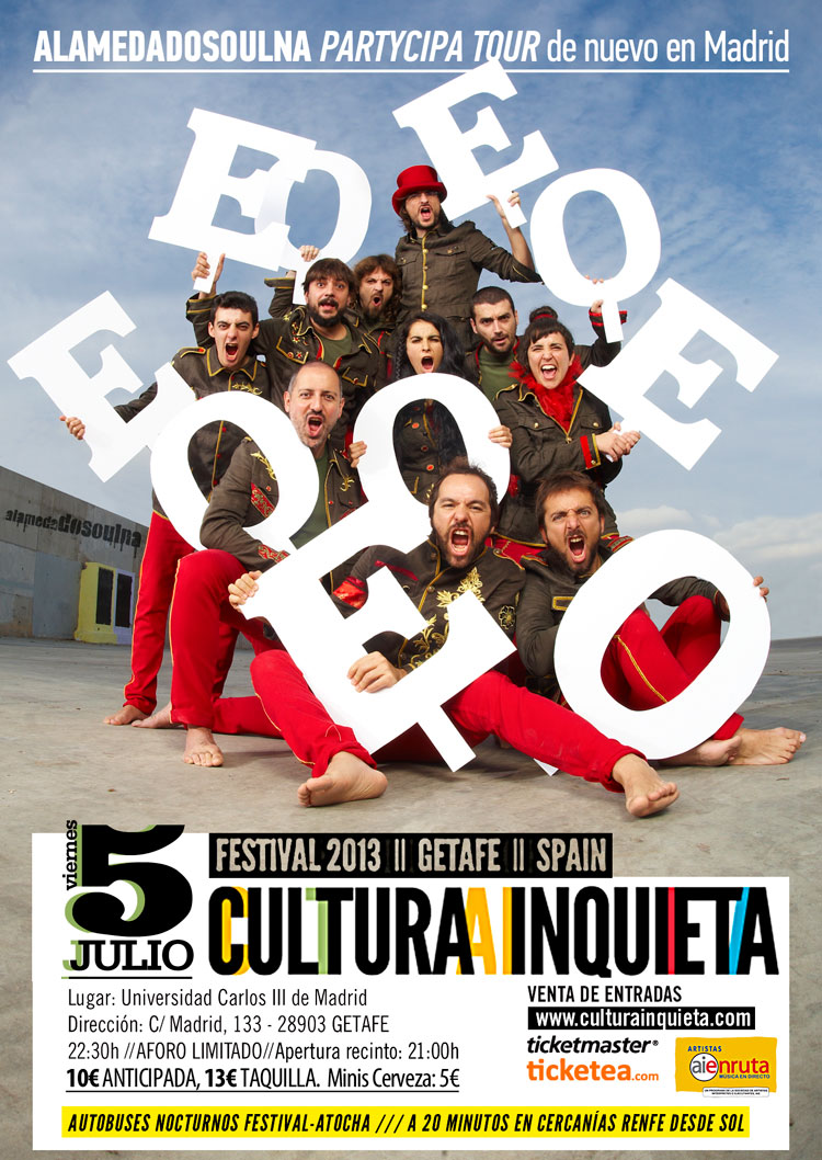 Alamedadosoulna estará este viernes día 5 de Julio a las 22:30 en el Festival Cultura Inquieta 2013 de Getafe de la mano de Partycipa Tour.