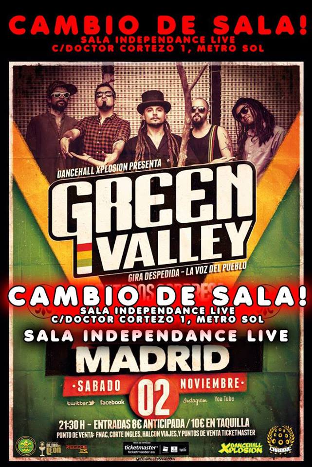 El concierto de Green Valley en la sala Caracol cambia de sala Independance live (Ultima hora)