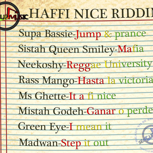 haffi-nice-riddim-sent-upLa productora Valenciana lanza esta producción de Reggae, Ragga, junto a nombres como Supa Bassie, Mista Godeh, Neekoshy, Rass Mango, Sistah Queen Smiley, Madwan, Green I, Miss Ghette. Os dejamos con él, podéis descargarlo desde Soundcloud