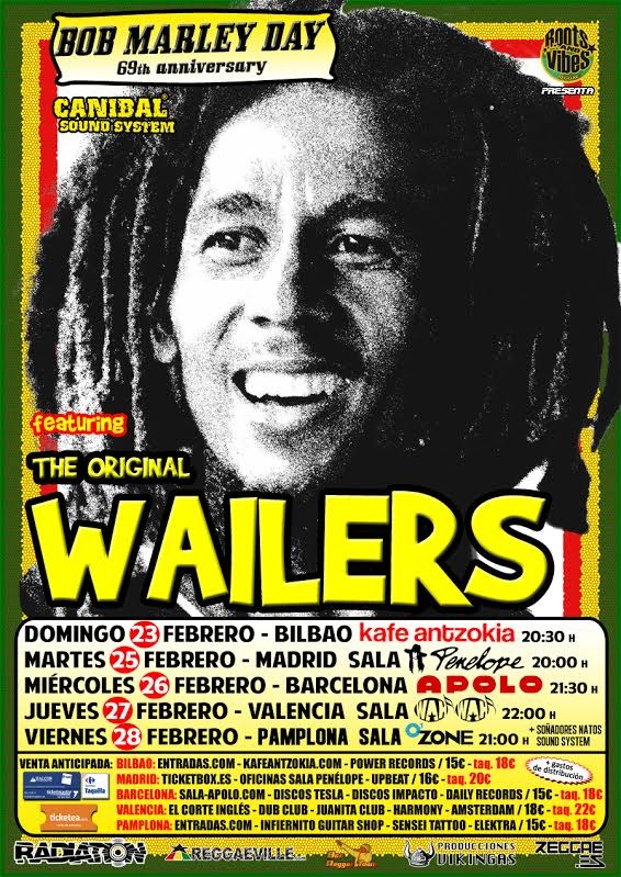 Roots & Vibes tiene el placer de celebrar el 69 cumpleaños de Bob Marley con la visita de los miembros de su Banda, Bob Marley & The Wailers, o lo que es lo mismo The Original Wailers.