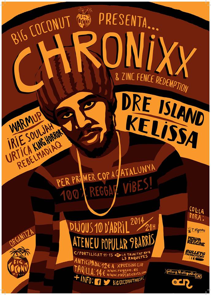 La gira se mueve por muchos países, varias ciudades italianas, austriacas, suizas, portuguesas, francesas, suecas, finlandesas, danesas y más -en total hay 22 fechas en esta #dreadandterribletour2014- uno puede sentirse bendecido de poder recibir, en una misma noche, no a uno sino a tres embajadores del movimiento Revival. Uno de sus más importantes impulsores, Chronixx  conocido por joyas como Here Comes Trouble (podéis ver un extracto de su hit „Here Comes Trouble“ mas abajo) que actualmente viaja por Europa y está acompañado también por Kelissa y Dre Island.