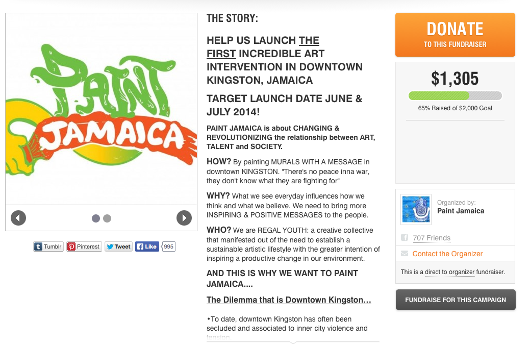 Y puedes colaborar con la causa a través de la plataforma Crowdrise: www.crowdrise.com/PAINTJAMAICA/fundraiser/paintja