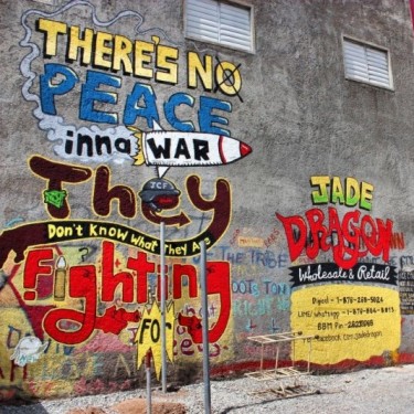 ¿CÓMO? El proyecto consiste en pintar murales con un mensaje concreto en el Downtown de Kingston. «There’s no peace inna war, they don’t know what they are fighting for». «No hay paz en la guerra, ellos no saben para qué estan luchando»