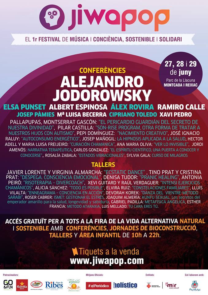 Por tanto, continua vigente la celebración de la feria de vida alternativa con más de 40 conferencias y todas las actividades familiares, talleres y los 200 stands dedicados a las terapias naturales, la sostenibilidad ambiental, el crecimiento personal y la alimentación biológica. La organización recuerda que el acceso a Jiwapop es gratuito y que los precios de talleres y conferencias oscilan entre 3 y 5 euros, a excepción de la de Jodorowsky, a punto de agotarse las entradas a 20 euros.