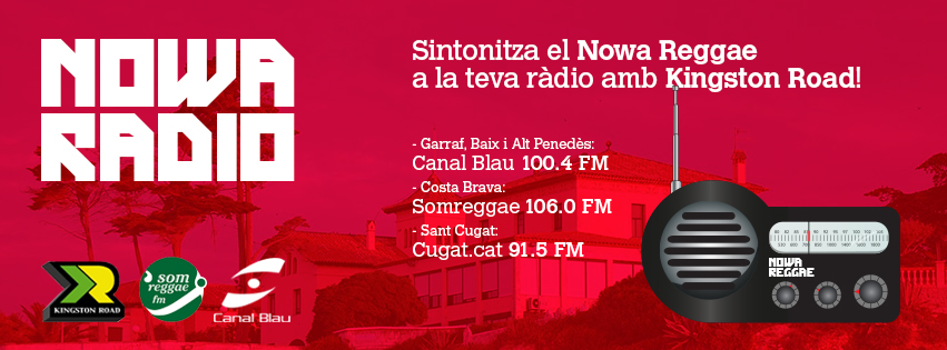 Maratón de Kingston Road Radio en el Nowa Reggae:A partir de las 14:00 horas del sábado podrás escuchar el programa de radio especial de Kingston Road en directo desde la playa de Vilanova , hasta bien entrada la madrugada . Podrás sintonizar en tu radio y online las sesiones del sábado en la playa , entrevistas exclusivas , los conciertos en directo y las últimas noticias sobre el festival !